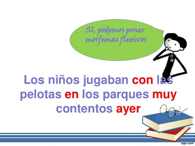 6. SI, podemos poner morfemas flexivos Los niños jugaban con las pelotas en los parques muy contentos ayer